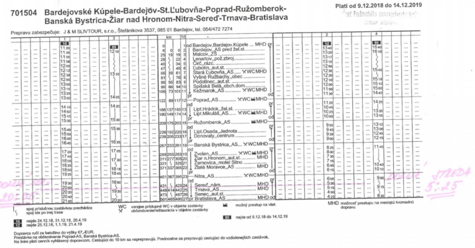 Autobusová zastávka v Dolnej Strede na linke Bardejov - Bratislava