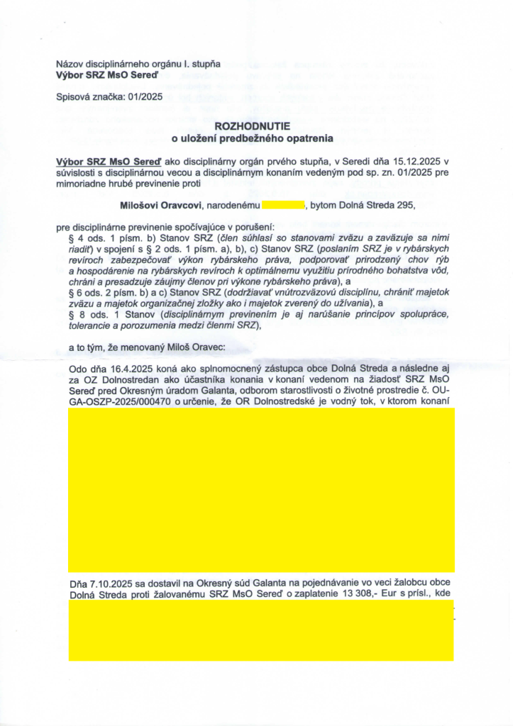 Oravca zo SRZ vylúčili za to že na základe splnomocnenia zastupoval obec Dolná Streda