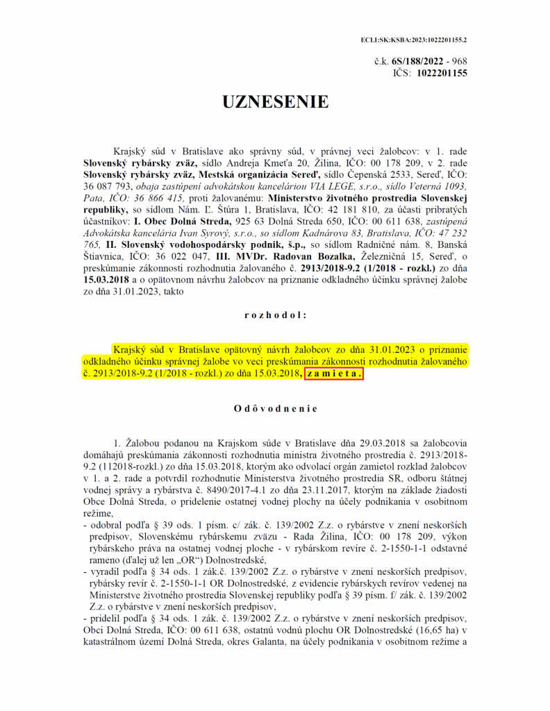Uznesenie Krajského súdu v Bratislave